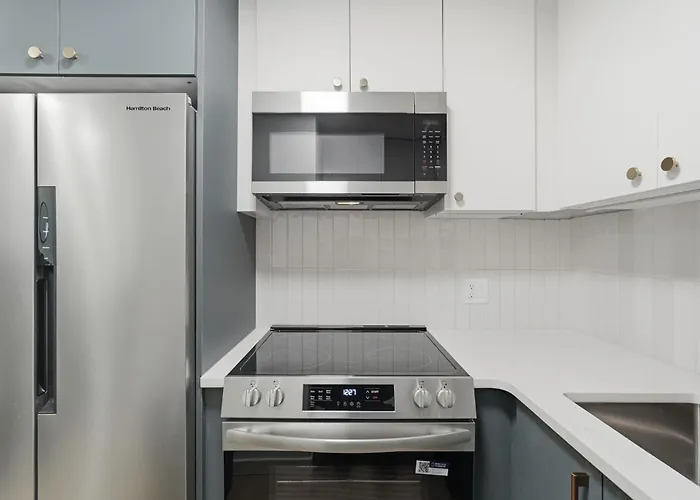 A fully-fitted kitchen at Carriage House Sleek 1Br Apartment villa is equipped with an oven and a dishwasher. Guests can try American dishes in Ed's Buffalo Wings & Pizza, located fairly close to the property. Also, 34th Street station is approximately 500 metres away.
